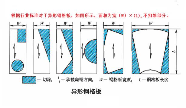 2.按用户提供图纸制作的钢格板,面积按图纸上总的外围尺寸计算,它包含开孔和切口部分。